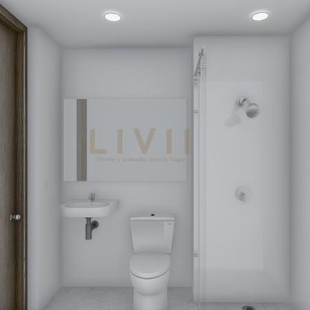 Baño: Diseño minimalista con pisos grises y accesorios modernos.